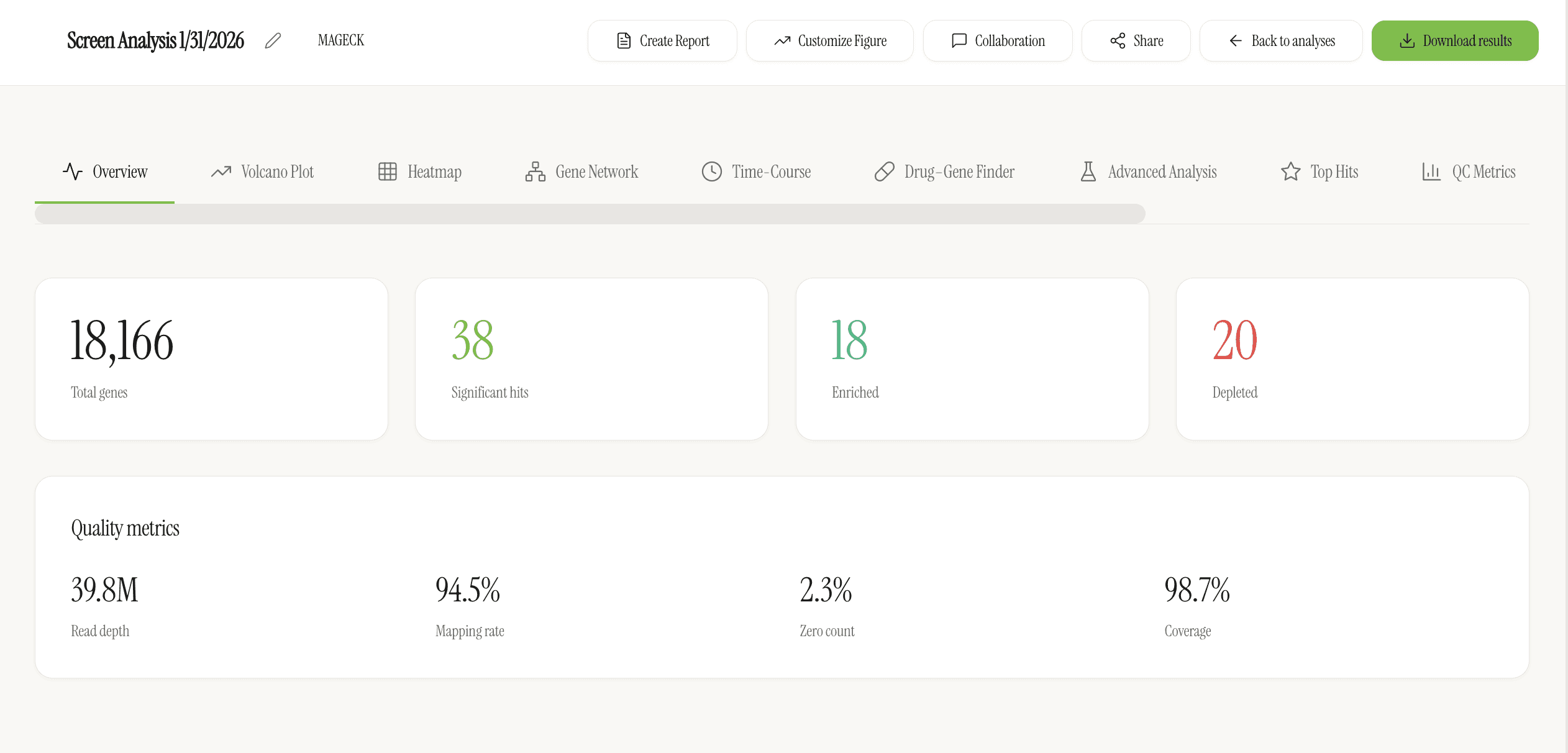 MAGeCK‑powered hit ranking with comprehensive quality control with every sample.